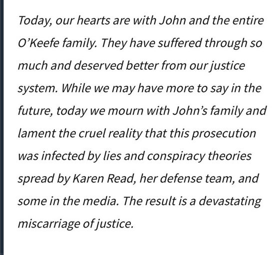 With the verdict in, the Alberts, McCabes and their circle of what the Free Karen Read crowd outside the courthouse consider to be unindicted co-conspirators, released a statement: