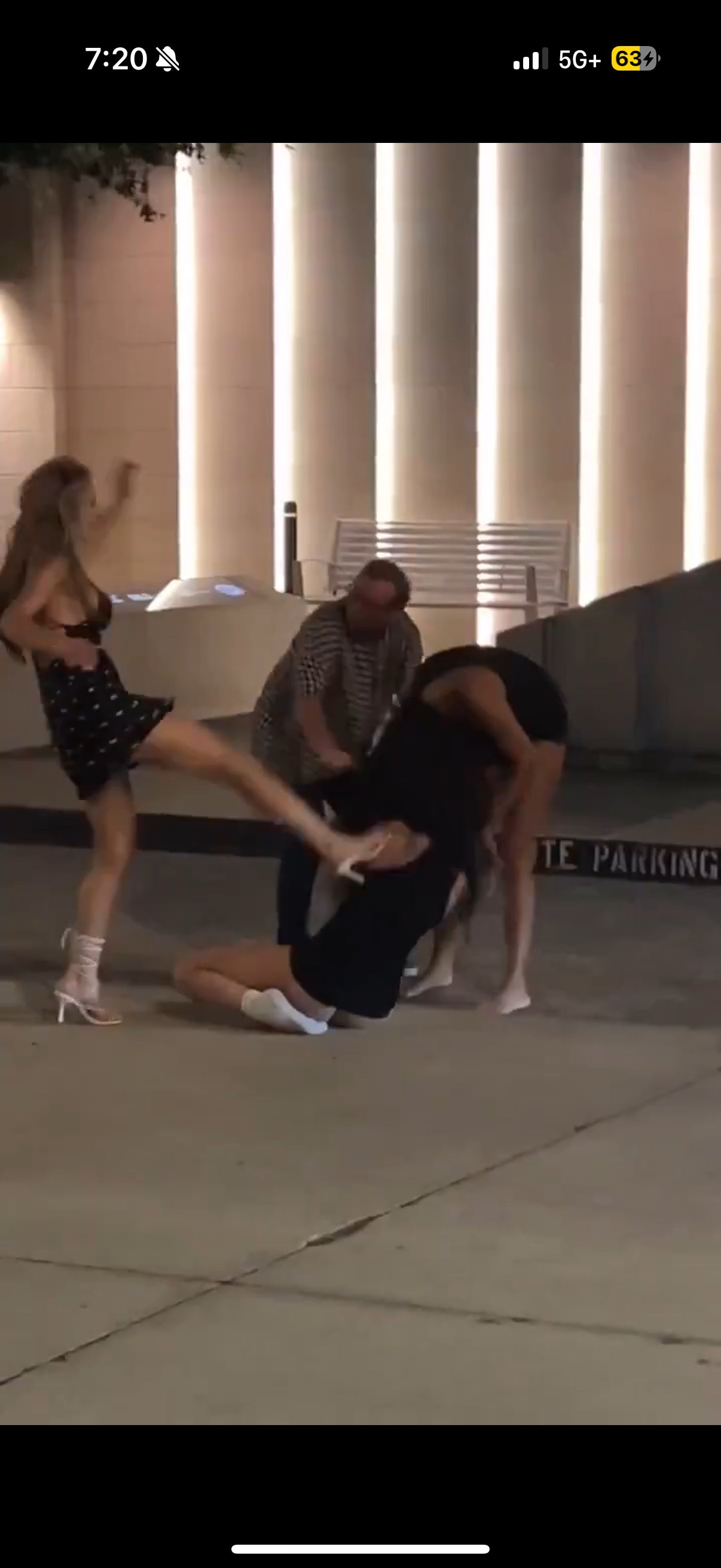 Next, she zeroed in on the weakest one in the pack. The one who had been taking the beating from black dress. My girl white heels.