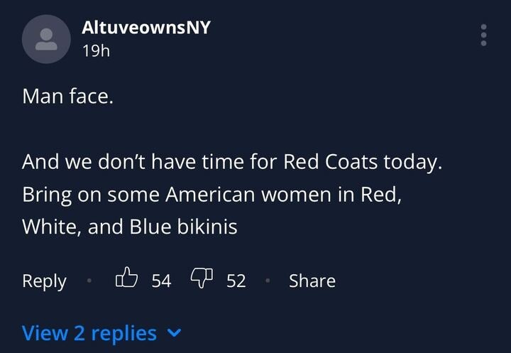 So in that spirit, we're shoving Red Coats into lockers and giving you the most patriotic scroll possible this weekend. I'll just say upfront it is A LOT harder to find USA bikini pics than you'd think. Mainly because we're only allowed to use licensed photos on the blog or we'll get sued. And then anything found on Twitter has to be done manually brick by brick.