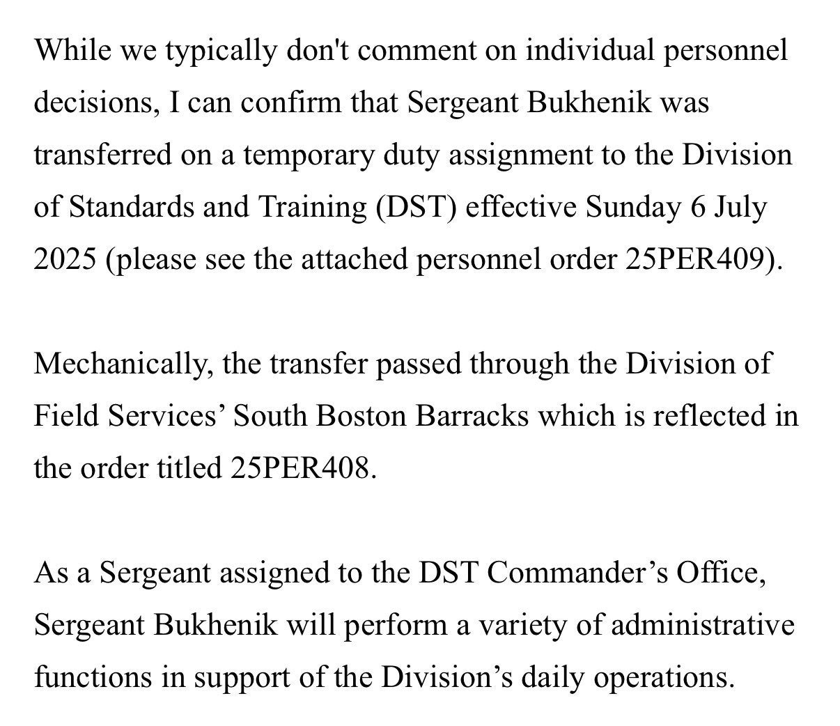 The MA State Police has reportedly decided to move Bukhenik as far geographically far away from Norfolk County as they can without trading him to another state for cash considerations and a Lead Investigator to Be Named Later: