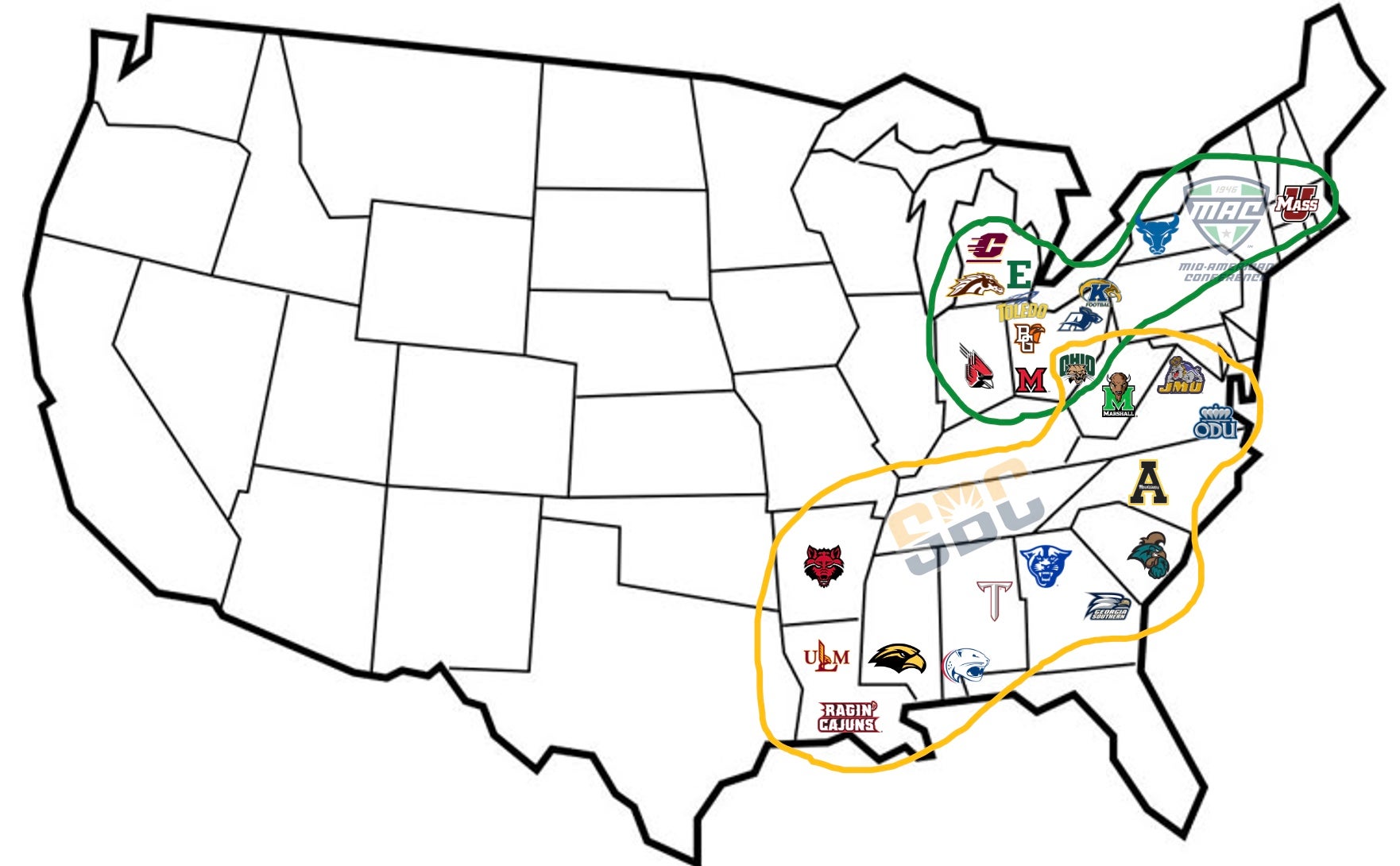 — Once considered one of the most stable and geographically compact FBS conferences, the MAC recently lost Northern Illinois to the Mountain West for football and the Horizon League for other sports. The additions of Buffalo and UMass have increased travel costs in a conference that was once made up entirely of teams from the Midwest.