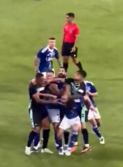 You know what? Now that I think about it, hitting another man with an open hand slap is pretty fucking mean. It's taunting them saying you don't need a full punch or not worthy of a real fight, so here's a slap that kids do. That said, don't sleep on the fact Cucho Hernandez comes in to swing wildly and accidentally catch his teammate with a punch right at about the 9 second mark. Love the intensity to come in like Roman Reigns with the Superman punch, but head on a swivel pal. Can't be missing guy to clock your own teammate.