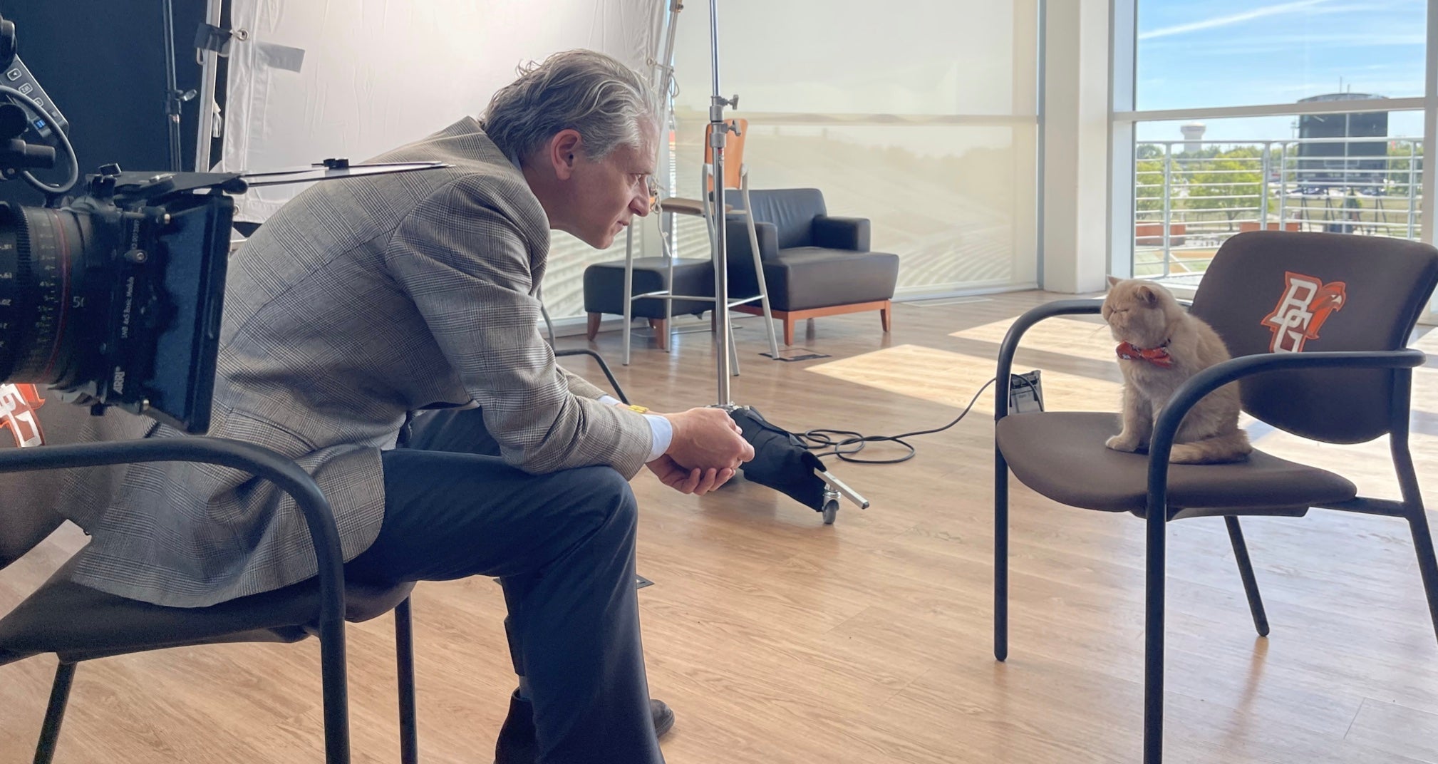 Honestly when I type it all out, it doesn't seem quite as crazy as it felt in real time. I'm almost regretting writing this blog. But trust me… it was… a football game. And if you watched that football game, at no point up until that trick play touchdown (or even before the strip sack) did you think Bowling Green had a punchers chance at winning. It was truly one of the most improbably comebacks I've ever witnessed. Although… in hindsight… I should have known we were in for something special when ESPN's Jeremy Schapp made a trip to Bowling Green this week to interview a cat.