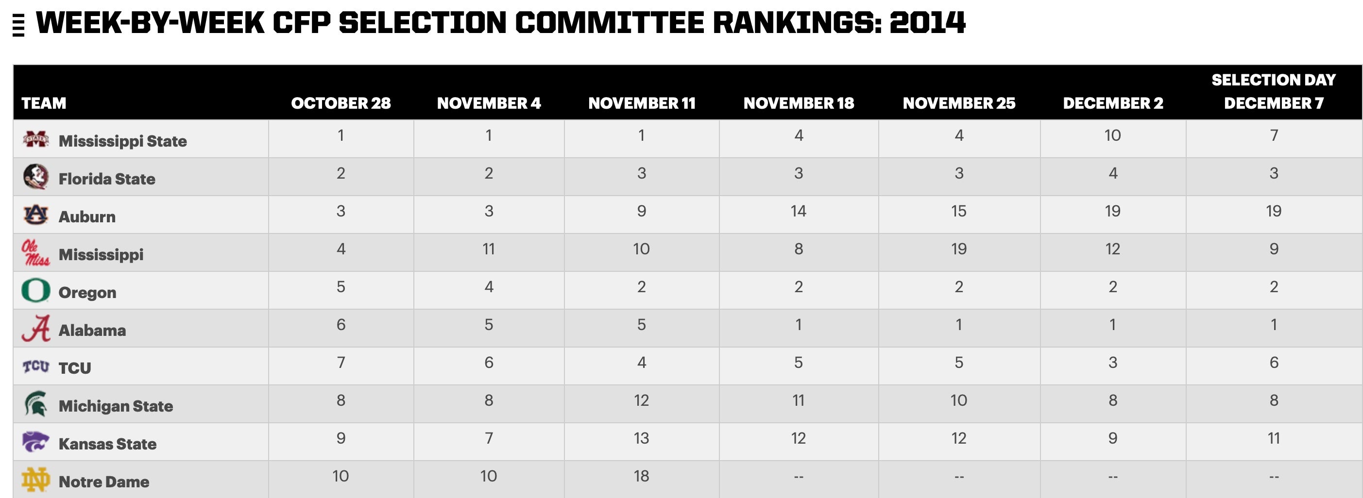 Unfortunately, Mississippi State fell apart in the final weeks of their season (lost to #4 Alabama & #18 Ole Miss). Then proceeded to lose in the Orange Bowl to #10 Georgia Tech. Mississippi State has a significantly better football history than Indiana. But as far as surprising college football teams who came out of nowhere and ascend to become legitimate national title contenders, the 2014 Mississippi State Bulldogs are about the closest thing we have to 2025 Indiana in recent-ish memory.