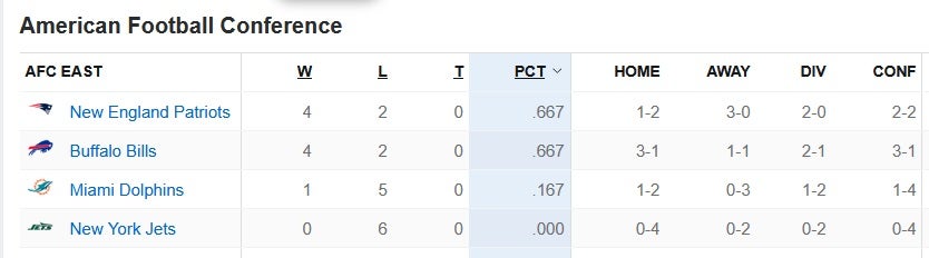 But when you've only played six games, the only way to measure yourself is against your competition. And the team to beat in the division has been beaten. Once at home by the Patriots, and now in Atlanta. The biggest obstacle is the way, as the Stoics say. And right now New England has stepped over the Bills and is sitting atop the division this late in a season for the first time since 2019, when a very different, much more experienced QB than Maye was under center.