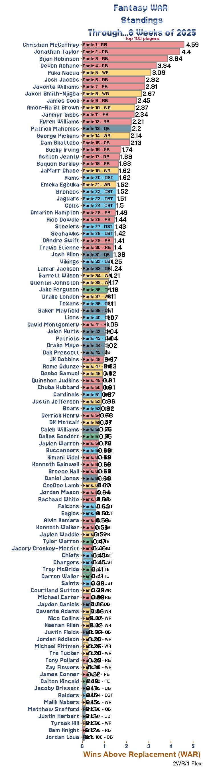 Curious how WAR works? Want the nerdy details? Give my new fantasy substack a try here. A little more business casual. I'll have something out later this week on some other stats to prep you for Week 7 too. But here's the full breakdown on how WAR is calculated.