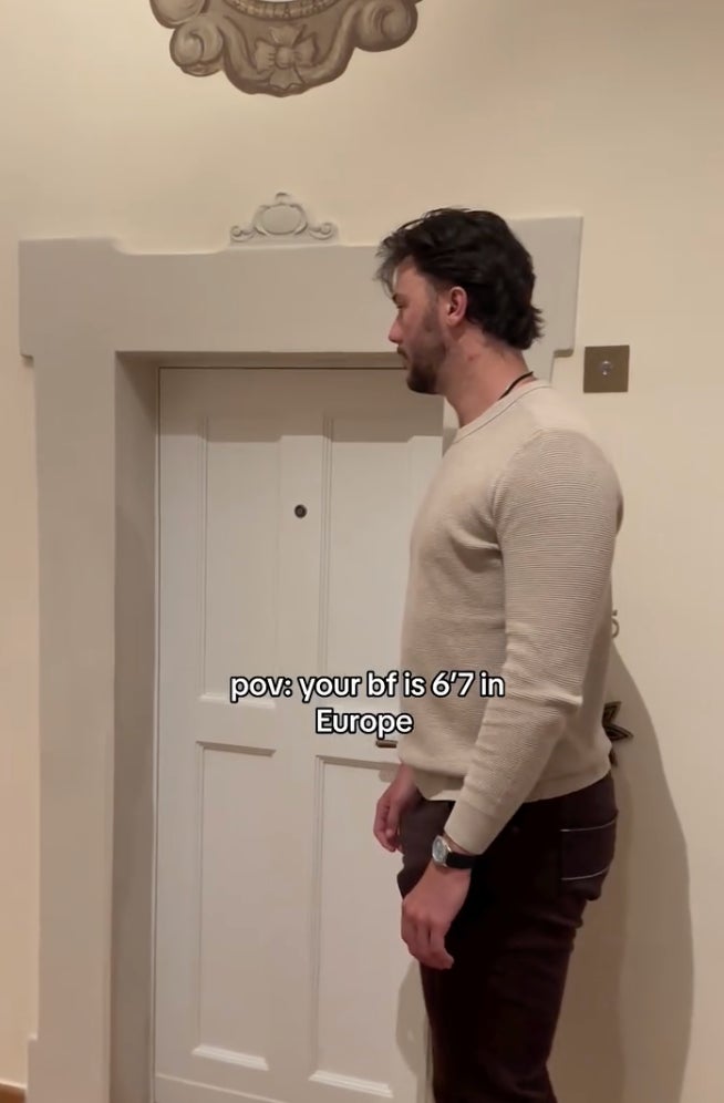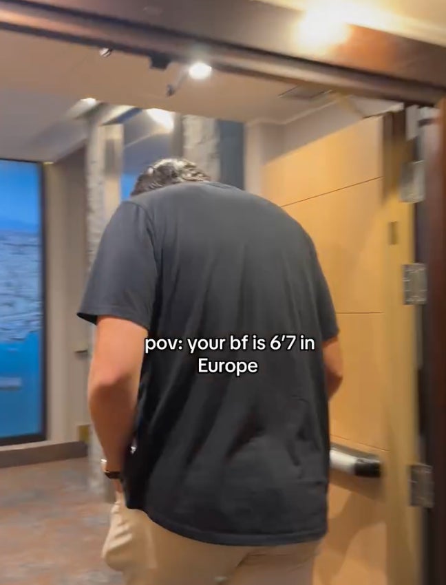 We've known for a while that Paul Skenes is literally larger than life, but now we get to see that in action. Skeens and his lovely girlfriend Livvy Dunne are overseas in Europe for a well deserved vacation, but there is one hiccup. Skenes is literally too tall to be a functioning human over there. The European brain can't comprehend that someone would be taller than 5'9" and would need a much larger doorframe. I mean look at him trying to head out of the room. It looks like he's in a dollhouse, these doorframes are tiny. Is Europe just built for people the size of ants?