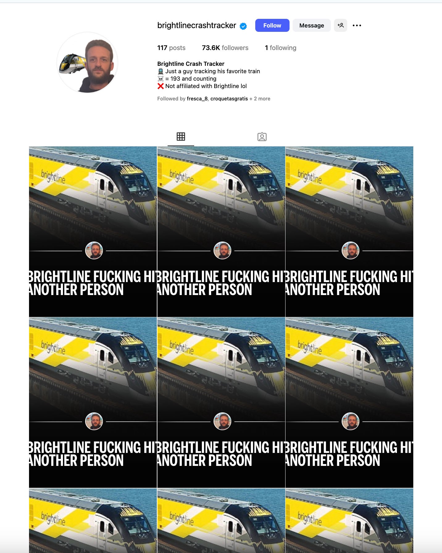 There's an instagram account setup that only tracks when people get hit by the Brightline, and as you can see, it is way too active.