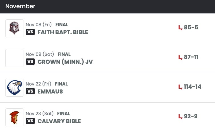 Here's a stretch of Free Luthern Bible College & Seminary scores from last season.