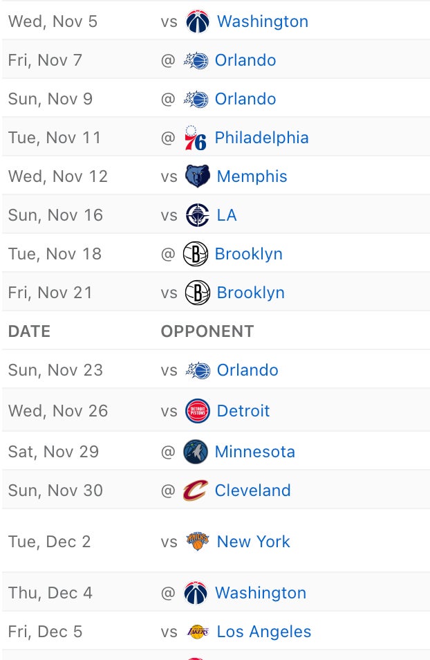 After the first 10 games (UTA loss), the next set of 15 games was going to give us a good idea of who this team is, given our sample of games would then sit at 25, or basically a quarter of the season. They needed to finish that set 9-6 to be on an above .500 pace. Here was the schedule