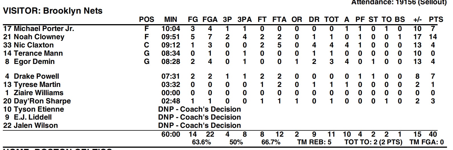 A 17-11 BKN close. The Celts scored just 3 points in nearly 3 minutes after Walsh cut the lead to 2, and it was nothing but poor execution on both ends. Missing open looks, allowing open looks, missing FTs, lazy defense, it was everything you absolutely cannot do when you're trying to win a game in the 4th quarter.