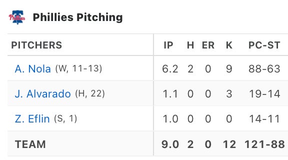 Nola used to be a lot more contact-driven but that's been curbed more with the use of his cut fastball. The result is 235 strikeouts to 29 walks across 205 innings. Utterly preposterous ratio leading to a 2.58, which is a lot more impressive than the 3.25 ERA suggests. Like most pitchers, there's some clunkers in his 2022 Game Logs. But nothing that jumps out negatively. If anything his last regular season start should be encouraging to Phillies fans: