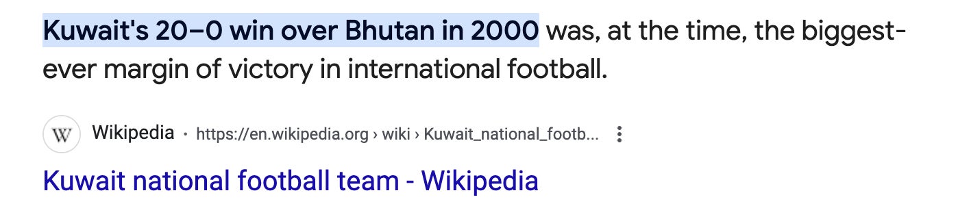 and once lost to Kuwait 20-0