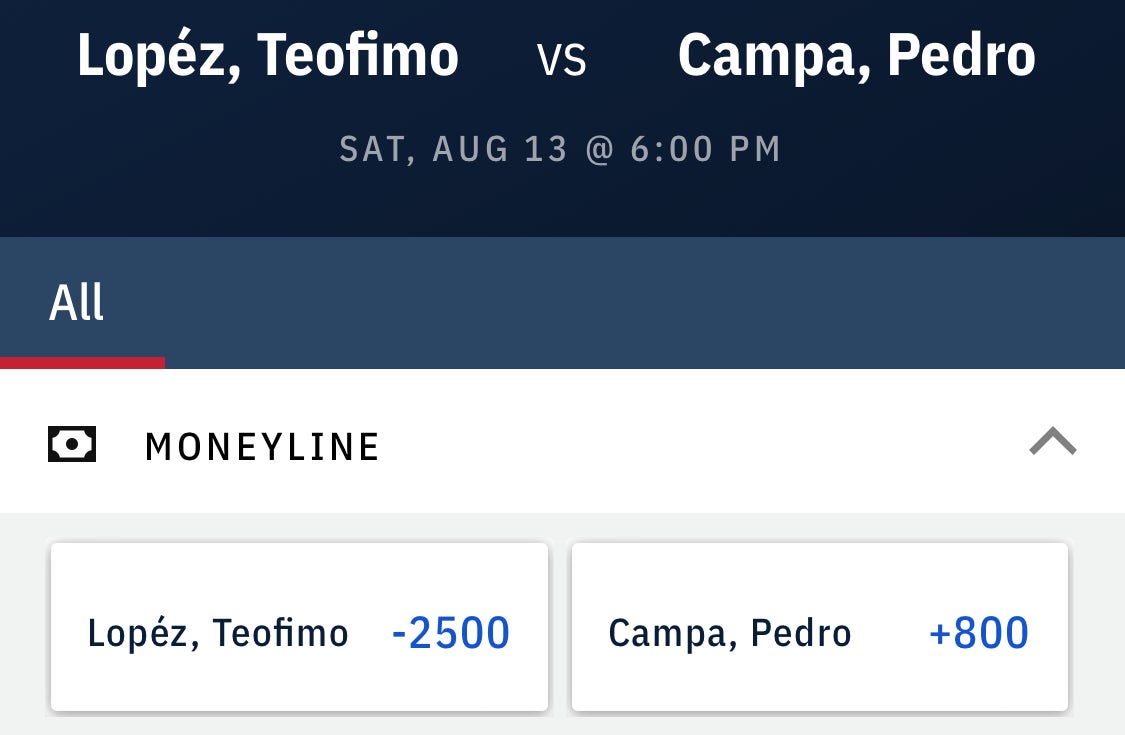 25-year-old Lopez (17-1, 12 KOs) is a heavy favorite on the Barstool Sportsbook even though his 30-year-old opponent is certainly more seasoned. But Campa has fought nowhere near the level of opponents that Lopez has faced.
