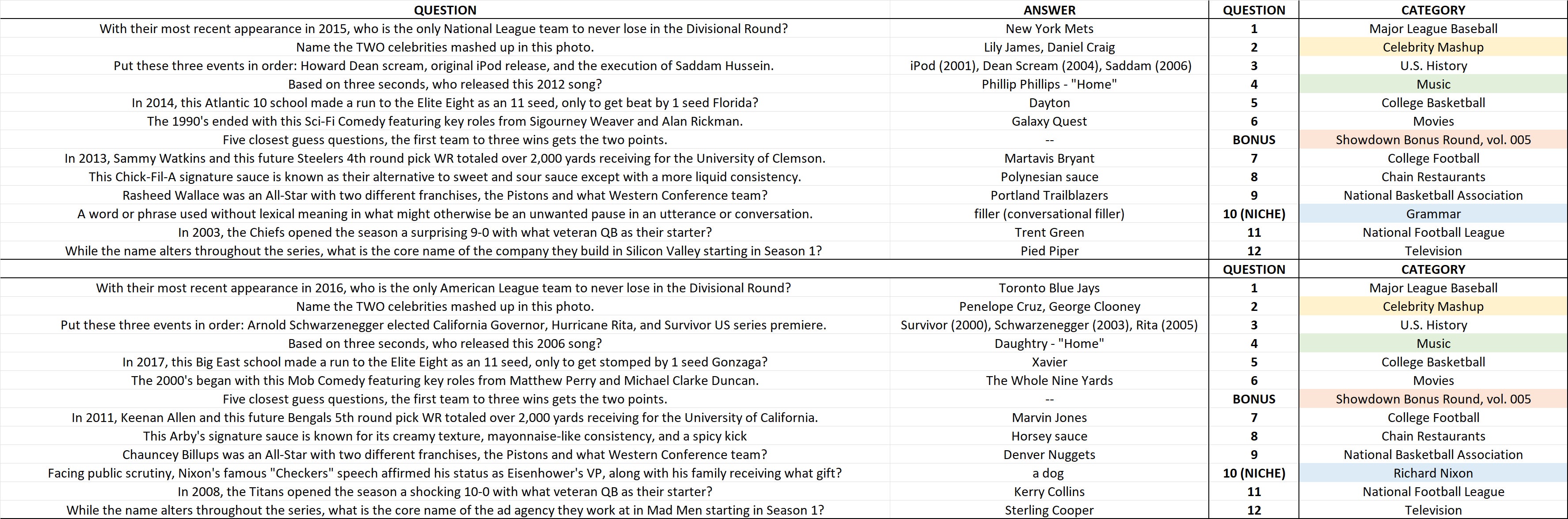 Here are this match's questions...