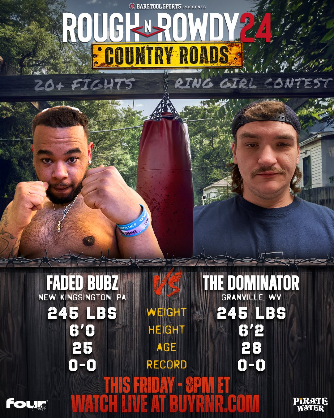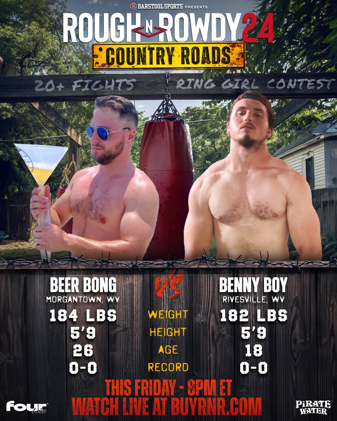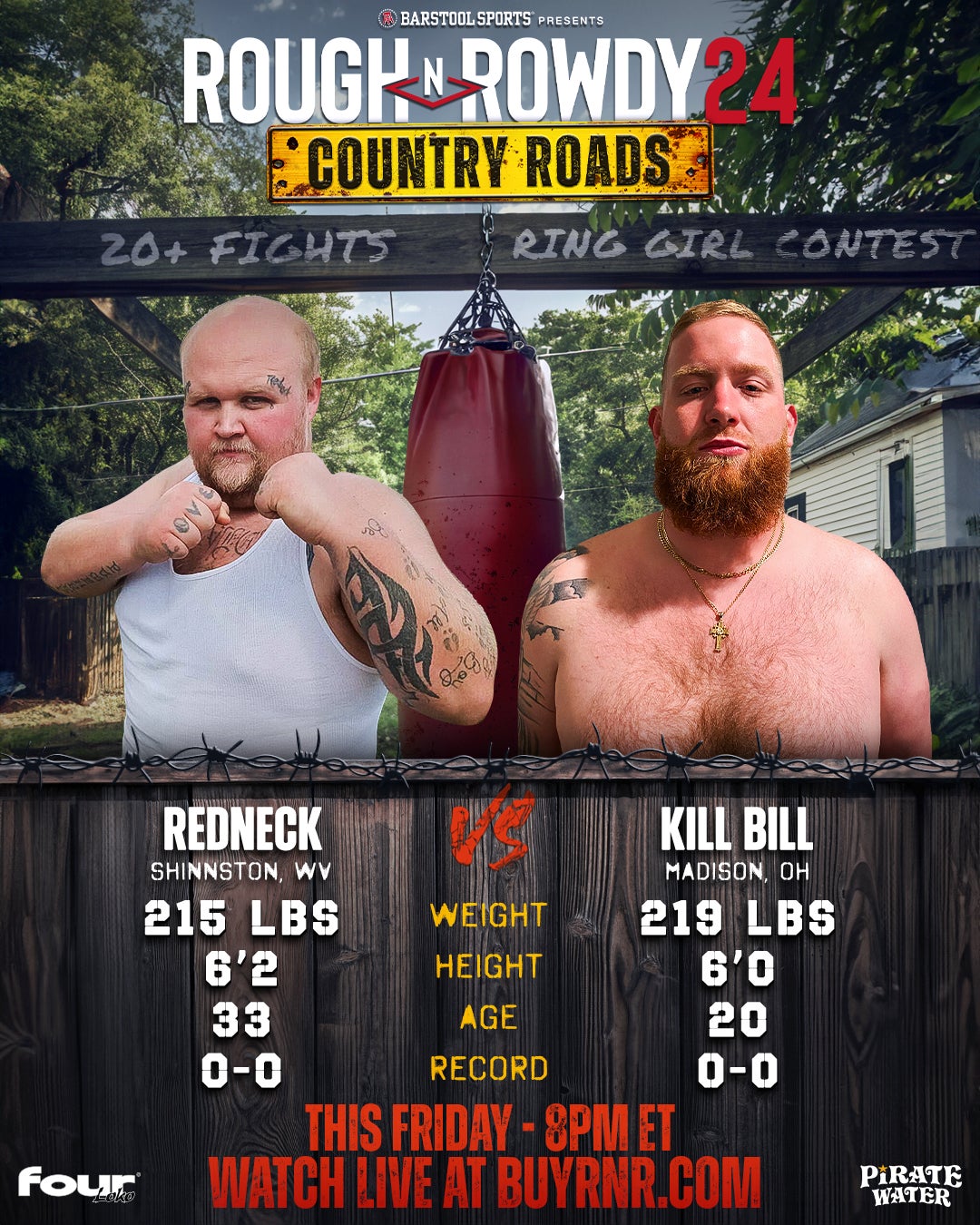 RNR has every weight division covered from the 120lb string beans to the 400lb ogres and fighters coming from West Virginia, Ohio, Pennsylvania, Kentucky, and even 2 guys paying their own way from Texas! Don't miss this return to greatness it's gonna be an amazing 3 hours with Dave Portnoy, Big Cat, Large on commentary and Rone & Caleb doing ringside & crowd interviews.