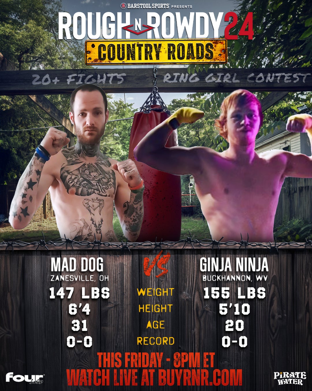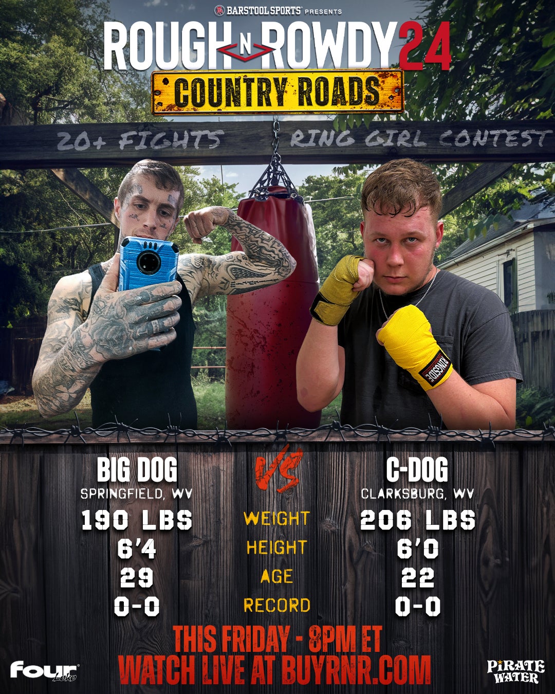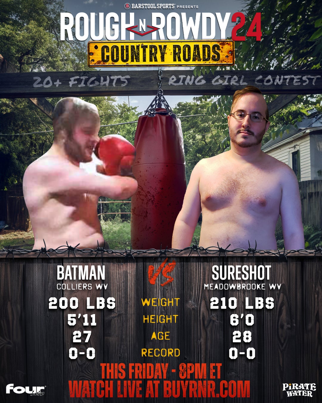 RNR has every weight division covered from the 120lb string beans to the 400lb ogres and fighters coming from West Virginia, Ohio, Pennsylvania, Kentucky, and even 2 guys paying their own way from Texas! Don't miss this return to greatness it's gonna be an amazing 3 hours with Dave Portnoy, Big Cat, Large on commentary and Rone & Caleb doing ringside & crowd interviews.