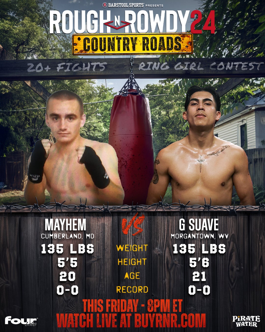 Unfortunately I won't be on commentary for Rough N' Rowdy 24 (will be scouting future fighters in the Philippines) but the 3rd chair is in good hands with Large filling in for me this Friday night. It's an incredible card of (0-0) fighters from West Virginia with the most new brawlers we've had since RNR1. And judging from these matchup videos there's plenty of bad blood between these guys.
