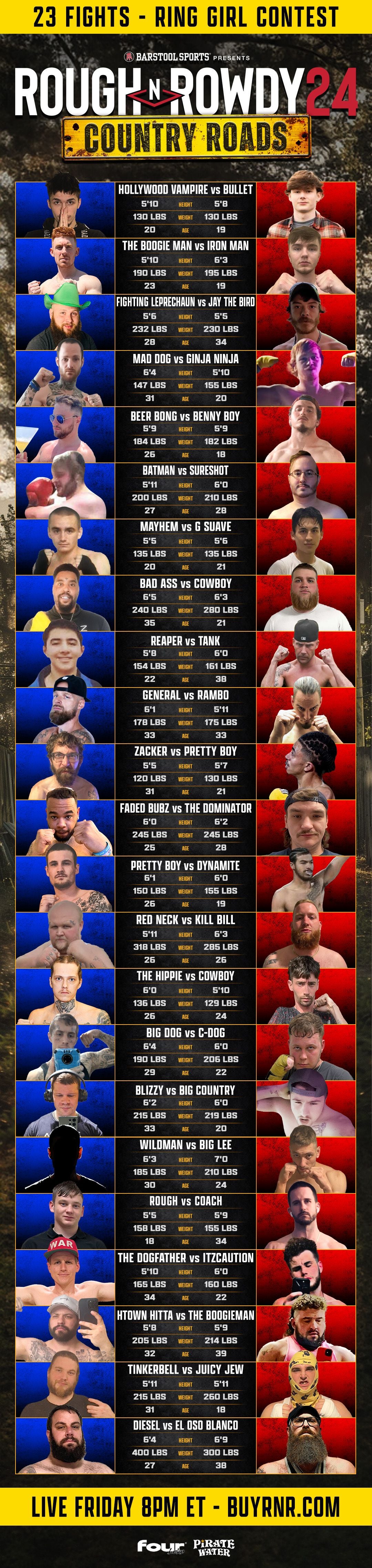 All I know for sure is fireworks are coming Friday night and not just in this matchup. We've got 20 brawls of brand new (0-0) fighters from West Virginia who all mean business.